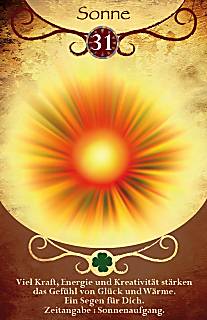 ![]() № 31 SONNE Viel Kraft, Energie und Kreativität stärken das Gefühl von Glück und Wärme. Ein Segen für Dich. Zeitangabe: Sonnenaufgang |